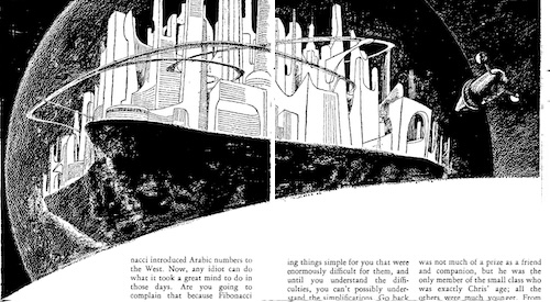 ![]() (Scranton from 'A Life for the Stars' by James Blish) See also the story Cities in the Air (1929) by Edmond Hamilton (Part two). The same issue has a picture on page 404 that was reprinted from a Hugo Gernsback magazine of 1922 showing cities held up by electromagnetic force to the cleaner, purer air high above the earth. Compare to this from And Then The Town Took Off by Richard Wilson. For other examples of city-sized force fields, compare to the wall of the air from Rondah, or Thirty-Three Years in a Star (1887) by Florence Carpenter Dieudonné, the lanson screen from The Lanson Screen (1936) by Leo Zagat, the langston field from The Mote in God's Eye (1974) by Larry Niven (w/J. Pournelle) and the bobble from The Peace War (1984) by Vernor Vinge. Comment/Join this discussion ( 3 ) | RSS/XML | Blog This | Additional