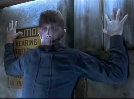 (T-1000 thrown into wall)