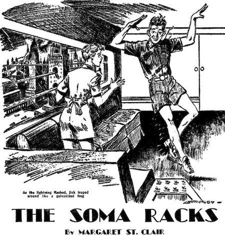 "Weary of her husband's lethargy, Oona, wife of the future, administers a vitalizer — with some very dizzying results!"