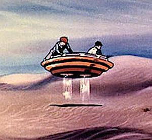 The program was, of course, Jonny Quest, one of my childhood faves. The hovercraft shown below made it into several episodes, and there were some variations on the idea in the show.