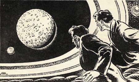 Who could even visualize such a picture? As it turns out, science fiction illustrator Frank R. Paul drew this illustration for "The Voyage of the Asteroid", a story by Laurence Manning, published in Wonder Stories Quarterly in 1932.