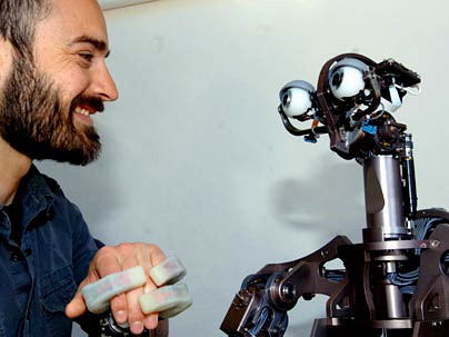 It's a lot of work for a robot to accomplish a simple task, like taking a cup from your hand and placing it on a shelf. Researcher Aaron Edsinger, an MIT postdoc who has been working on Domo for the last three years, puts Domo through its paces.