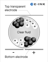 Microcapsules provide the magic - e Ink writes the page just once. Positive or negative charge holds the "dot" (or lack of one) in place until the screen is rewritten with a new page.