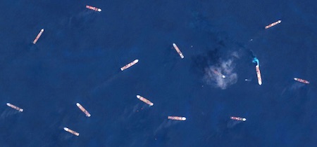 Satellite photos have revealed a strange consequence of the Covid-19 pandemic; unwanted cruise ships find no ports that will take them, and they huddle together in pathetic groups out at sea.